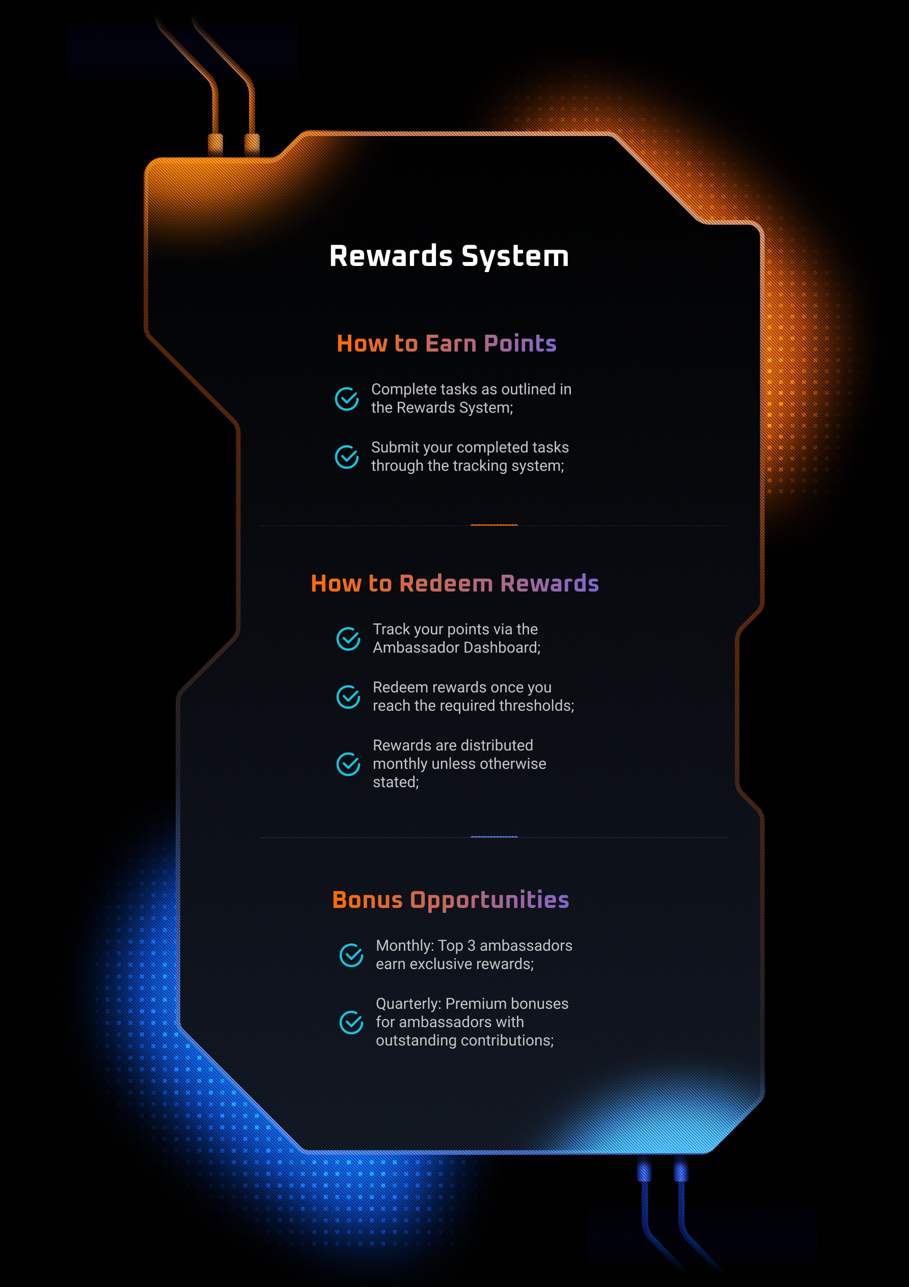 Quarterly Rewards: Ambassadors with exceptional contributions receive premium incentives in USDC;