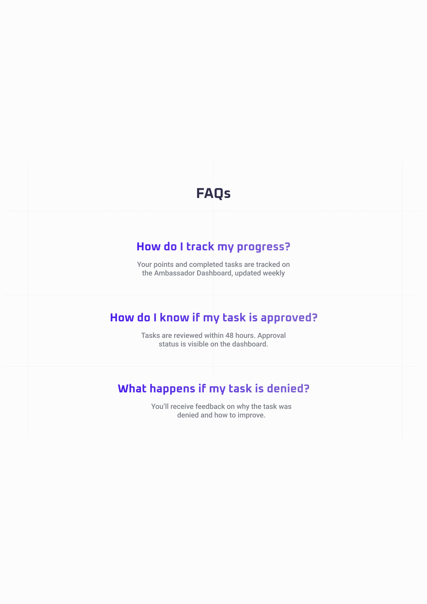 The NXT Ambassador Program operates on a points-based rewards system and cash. Every contribution you make earns points or USDC, which can be redeemed for $NXT tokens or other exclusive perks.