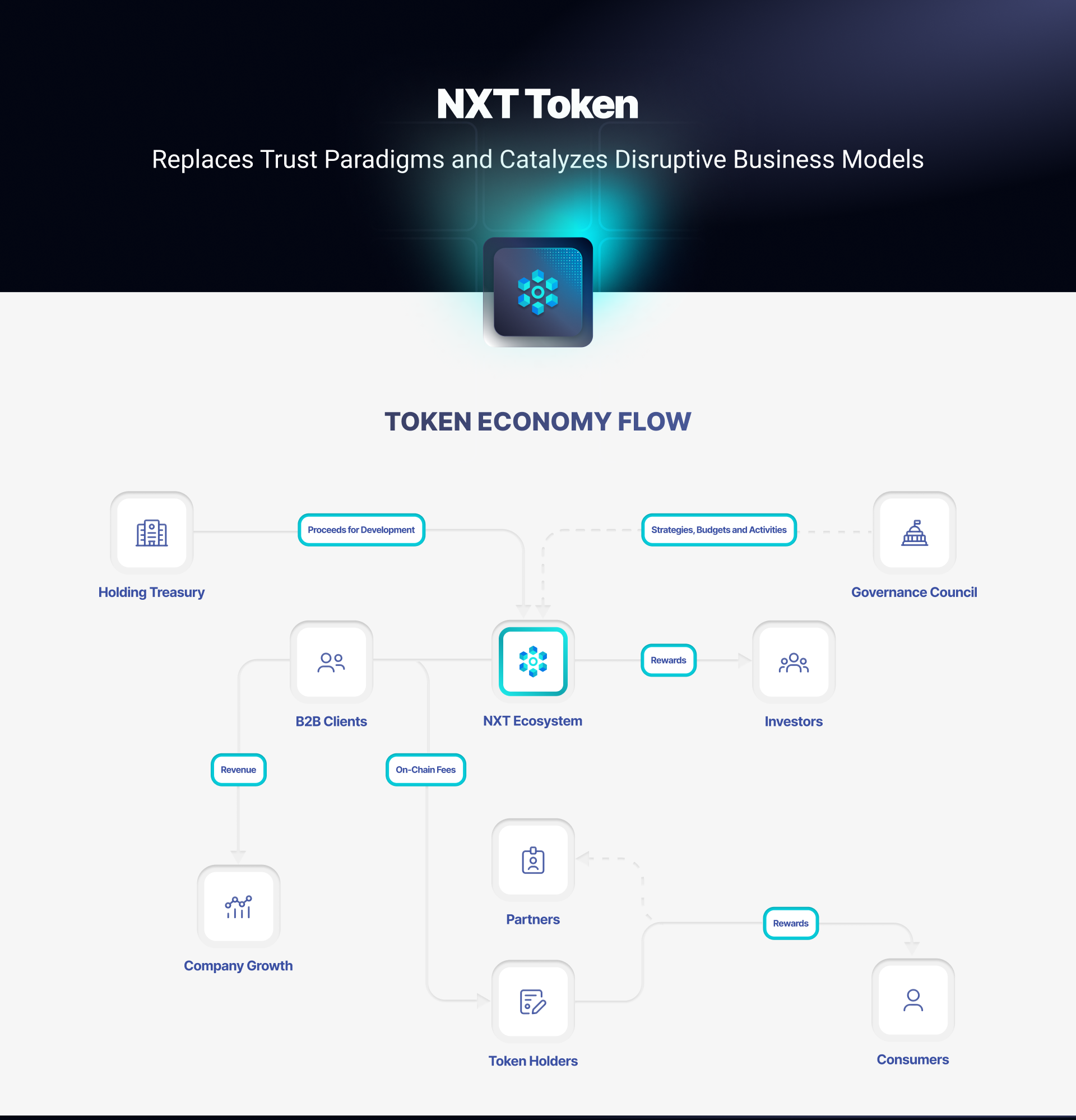NXT operates within a structured token economy, ensuring that every participant, from individual users to enterprise clients, plays a role in its growth.